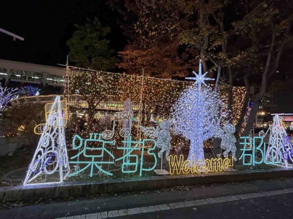 JR郡山駅の西口・東口広場や駅前大通りで点灯が始まり、今年は20回目の節目の年であり、西口の名物「幸せのトンネル」がリニューアルされた。イルミネーションには「楽都郡山」やキャラクター「がくとくん」、楽器・音符・花火などがきらめき、幻想的な雰囲気を演出している。