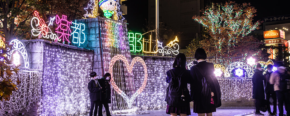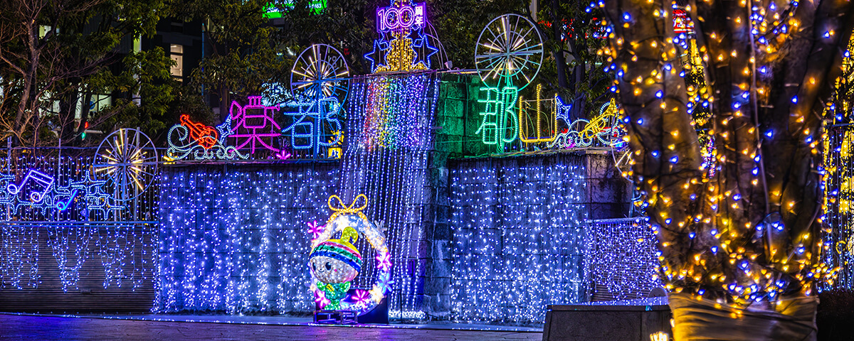 今年は駅前大通りの電飾区間が30メートル拡大され、LEDは昨年より2万球増えた46万球が使用されている。