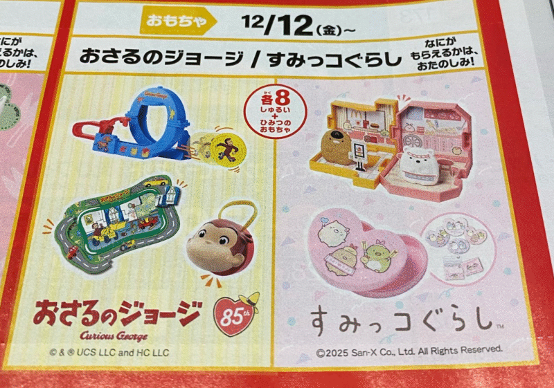 @muutonubotomuuuハッピーセット「おさるのジョージ」&「すみっコぐらし」12月12日より発売! - GAME Watch share.google/VNwBxHL5zqG61O…