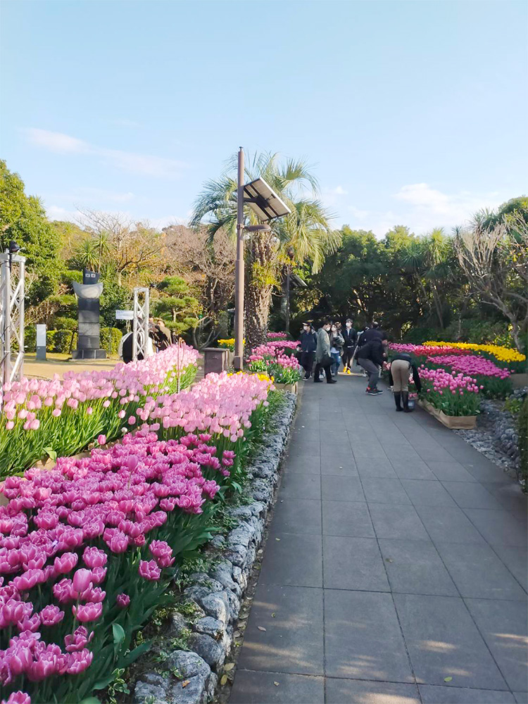その数、10種類以上・約3万本が植えられており、例年は年末がピークですが、今年は気候の影響で開花がやや遅れているとの事。それでも色とりどりの花が来園者を楽しませており、鑑賞は1月末まで可能との事です。