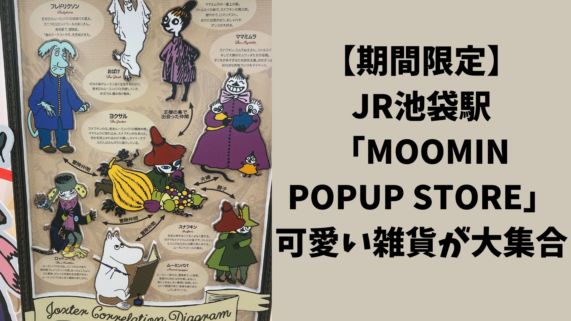 「MOOMIN POP UP STORE」が、「JR池袋駅構内 南口改札前イベントスペース」で、開催決定!期間は2025年9月30日(火)〜10月16日(木)です!ムーミンファンにはたまらない素敵なアイテムが盛りだくさん。特に、限定商品や人気キャラクターのグッズは見逃せません。家族や友人と一緒に訪れて、楽しい時間を過ごしましょう!期間限定のポップアップストアーですので、お見逃しなく!