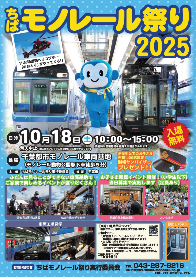 @chibamonoPRモノちゃんです✨ 10月18日(土)に千葉都市モノレール車両基地で「ちばモノレール祭り2025」があるよ!みんなが楽しめるイベントが盛りだくさん🤗みんなあそびにきてね!🚟🚟 #千葉モノレール #モノレール祭り chiba-monorail.co.jp/index.php/2025… pic.x.com/3JuLlsQ9dN