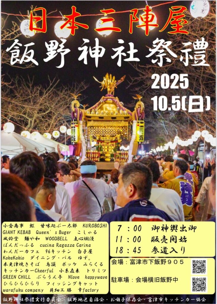 祭礼では、みこし1基と山車5基が5地区を巡行し、伝統の「龍神の舞」も披露される。また、「三大陣屋」を掲げたポスターを作成し、飯野陣屋の歴史的背景も発信している。今年の「飯野神社祭礼」は、一味違う盛大な祭りとなりそうだ。