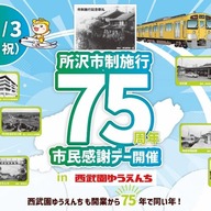 埼玉県所沢市の「西武園ゆうえんち」では、市制施行75周年を記念して、11月3日に「所沢市民感謝デー」を開催。所沢市・西武鉄道との共催で、「75」にちなんだ特別企画を多数実施する。