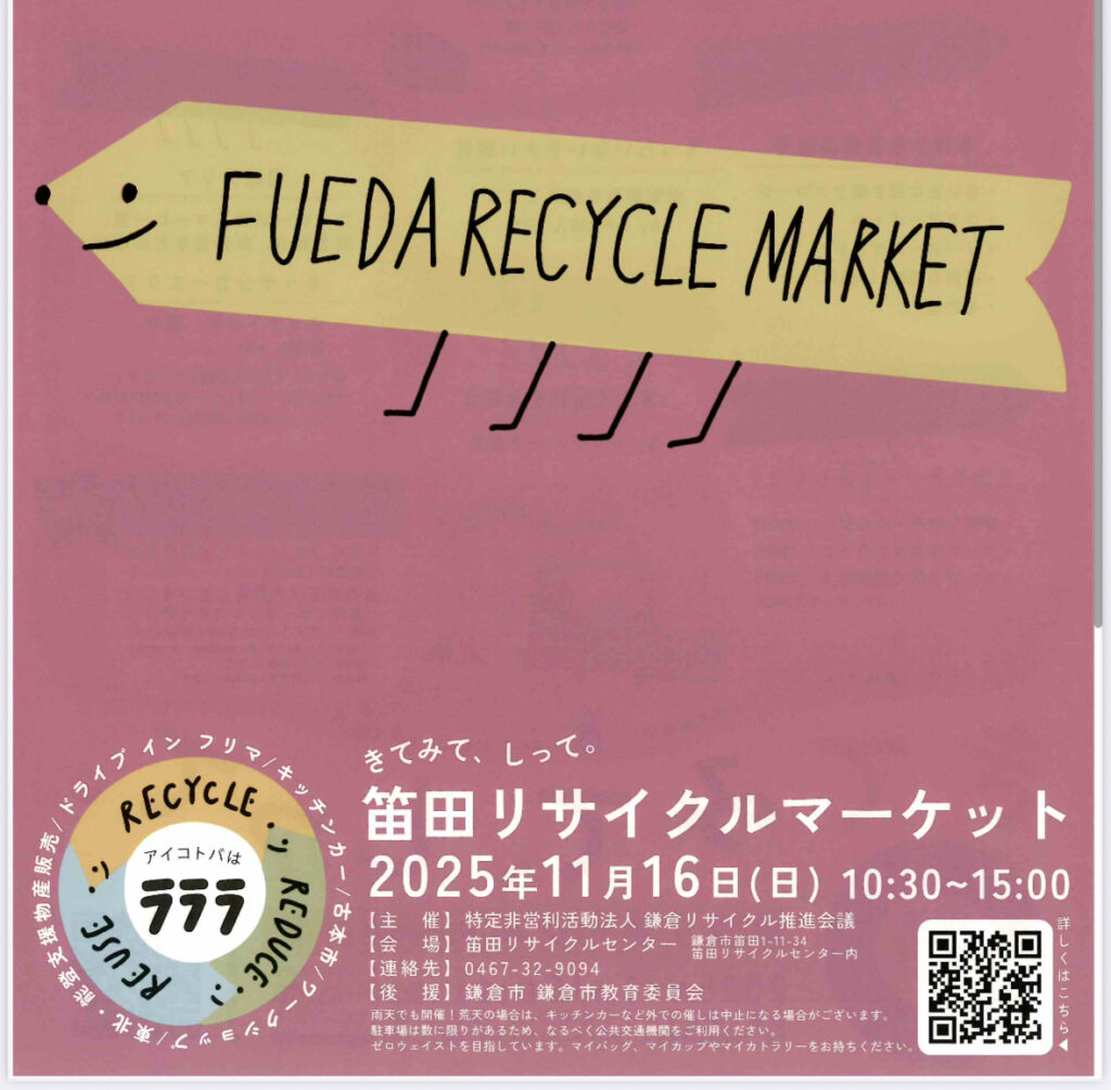 2025年11月16日(日)、鎌倉市の笛田クリーンセンターで「笛田リサイクルマーケット」が開催されます。
