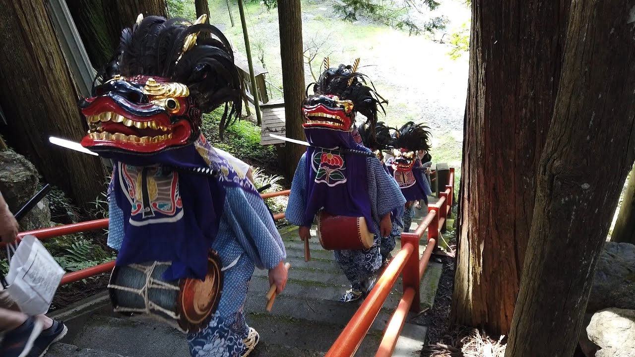 獅子舞は基本的に 3頭1組(大雄・雄獅子・雌獅子)で行われ、「剣を口にくわえて舞う」演目があることで、非常に勇壮かつ緊張感ある演出です。また、秩父地方の他の獅子舞とは動きや雰囲気が異なり「跳ねる動作」が多く、荒々しさと優美さが共存する舞とされています。
