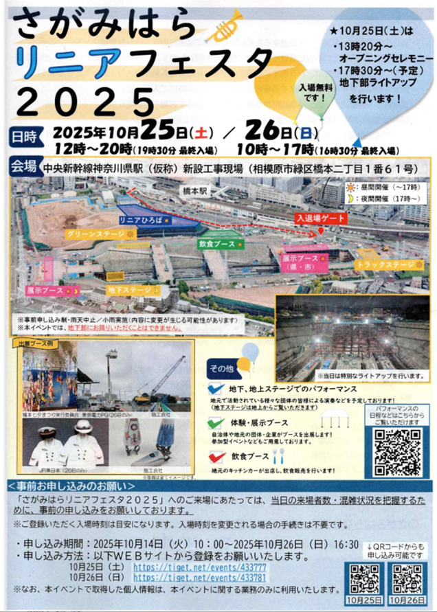 @TetsudoCh_subリニア工事現場に入るチャンス!「さがみはらリニアフェスタ2025」10/25・26、アイドルに音楽・ロボット・重機が揃うフェス(橋本駅) #鉄道チャンネル tetsudo-ch.com/13013212.html