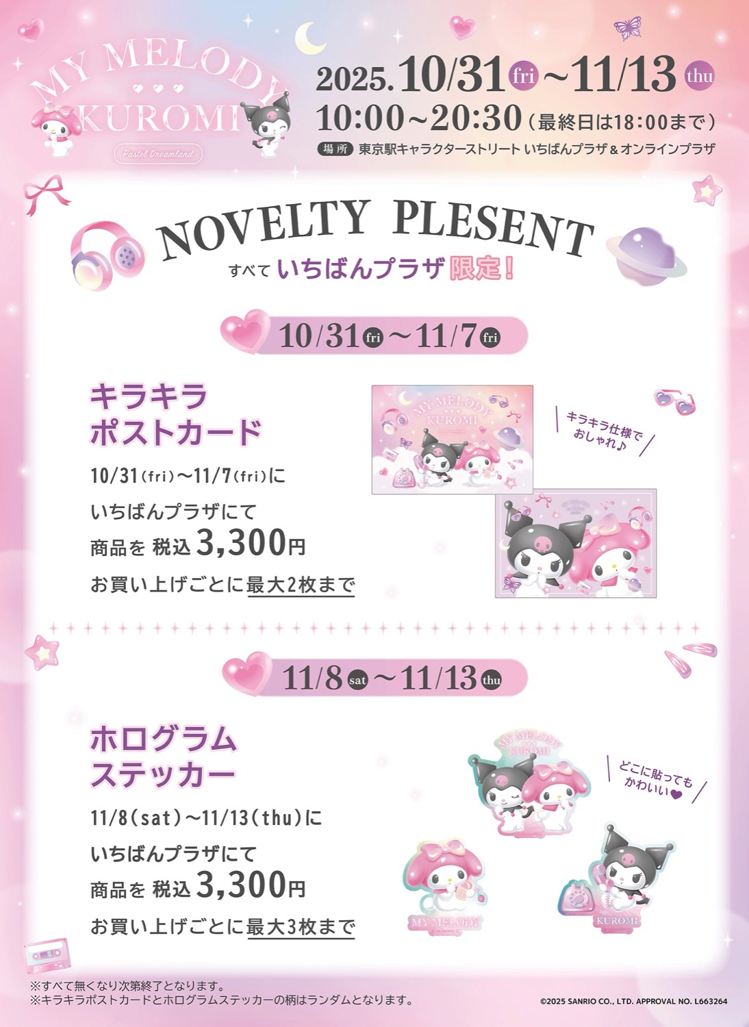 サンリオの人気キャラクター「マイメロディ」50周年と「クロミ」20周年を記念したイベント「マイメロディ&クロミ パステルドリームランド」が、10月31日(金)~11月13日(木)に東京駅一番街の「東京キャラクターストリート いちばんプラザ」で開催されます。