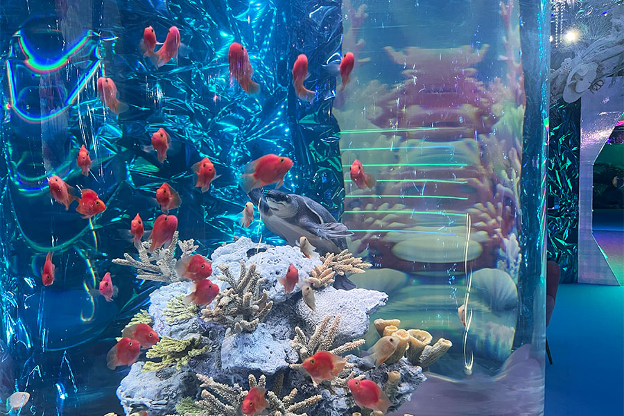 約1,000平方メートルの館内に全10エリアがあり、約200種類・5,000匹以上の水生生物を展示。来場者は宇宙船の乗客として、音楽やデジタル技術で演出された幻想的な空間を巡る。