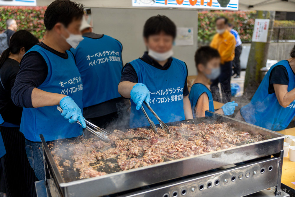 豊洲五丁目の住民が防災の観点から交流を深めるために始めた手づくりの行事で、今では地域グルメイベントとしても人気を集めています。