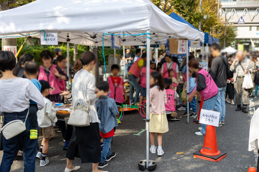 会場は豊洲シエルタワー裏「うるおいの木かげ道路」で、一部は歩行者天国となり、模擬店や飲食ブース、キッチンカーが並びます。地域のマンションや店舗が出店し、子ども向けアトラクションも用意されますよ。