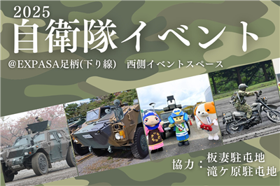 2025年11月2日(日)・8日(土)に、静岡県 駿東郡 小山町にある「東名高速道路EXPASA足柄(下り)」で「自衛隊イベント2025」が開催されますよ。