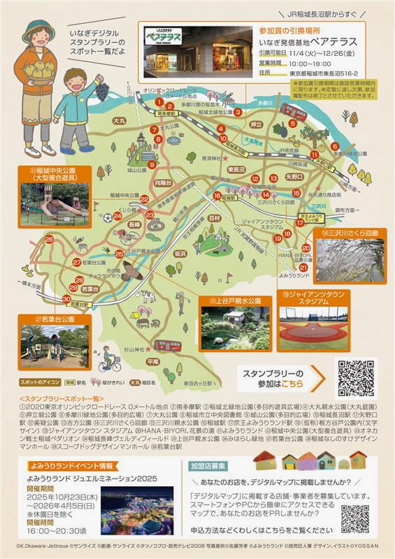 京王相模原線・JR南武線沿線の東京・稲城エリア全30スポットを巡る無料デジタルスタンプラリーが、2025年11月4日〜12月26日に開催されますよ。