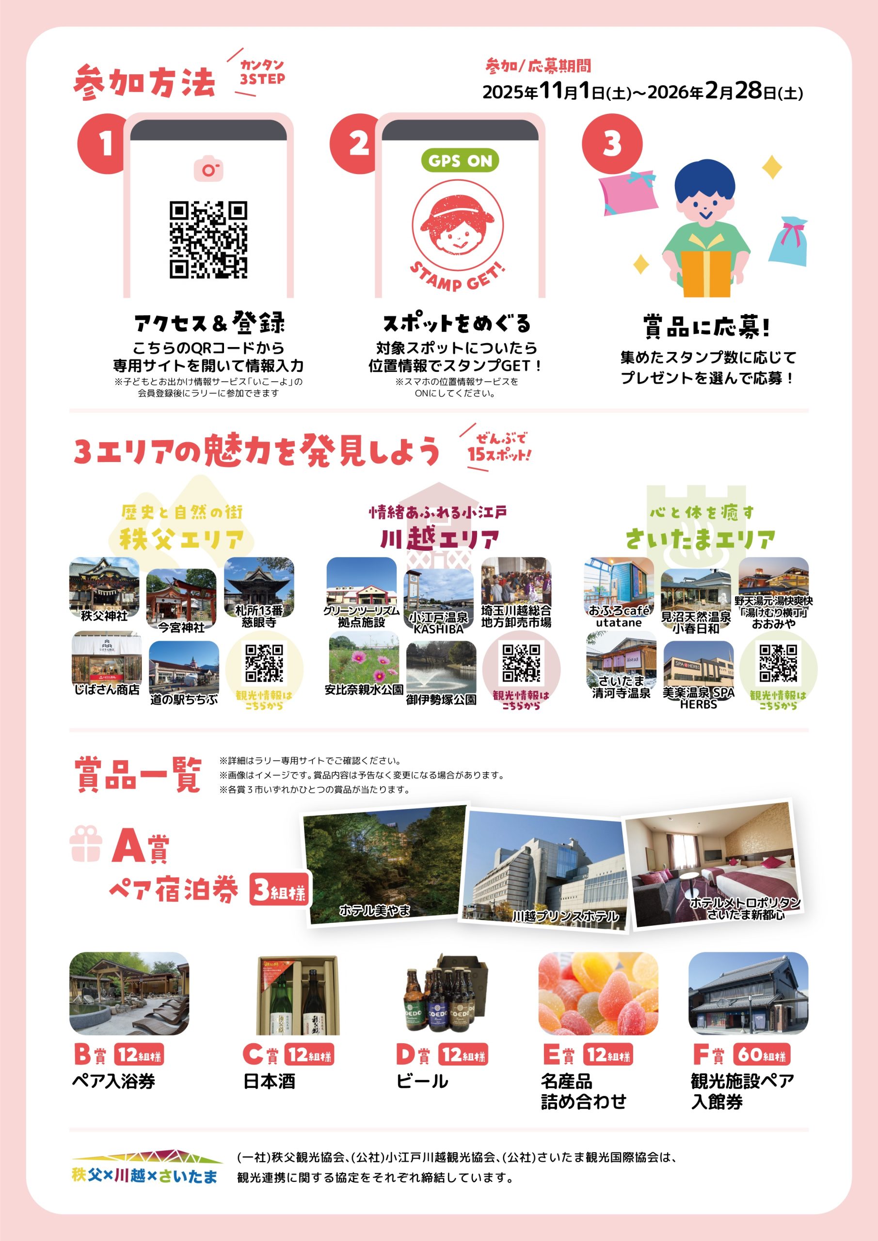 秩父市・川越市・さいたま市の3市を巡る「周遊デジタルスタンプラリー」が、2025年11月1日からスタートしますよ!