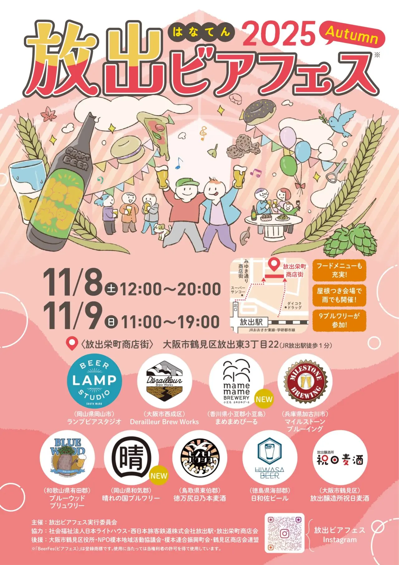 11月8日・9日に大阪市鶴見区の「放出栄町商店街」で、全国9社のブルワリーが集まるクラフトビールイベントが