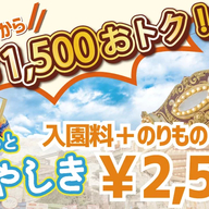 平日13時以降の入園+アトラクション3回券がセットで料金は大人2500円!