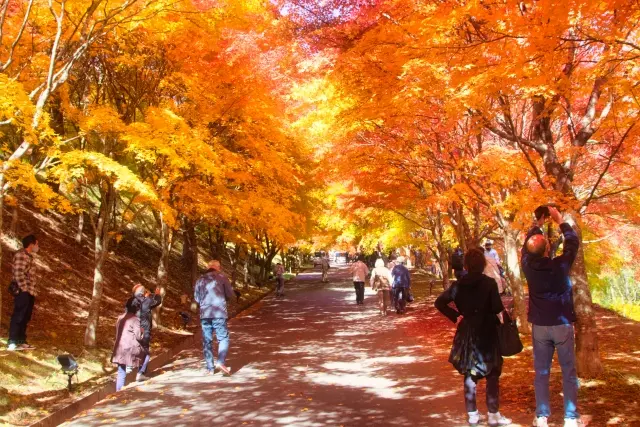 今年は色づきが例年より1週間遅れで、10月25日頃から始まった。名物の「もみじのトンネル」は現在7割ほど色づき、来週にかけて見頃を迎える見込み。11月16日まで18~21時にライトアップも実施している。また、11月8・9日の7~17時は県道でマイカー規制があり、臨時駐車場(1台1500円)の事前予約と、シャトルバス(往復200円)の利用が必須となるのでご注意!