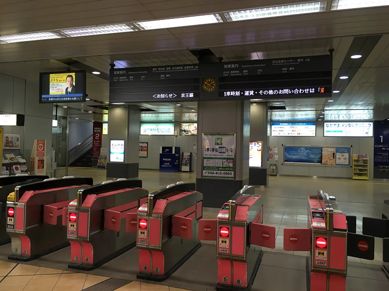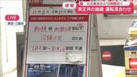 駅では改札前に規制の看板が置かれ、構内へ立ち入れない状況となっています。
