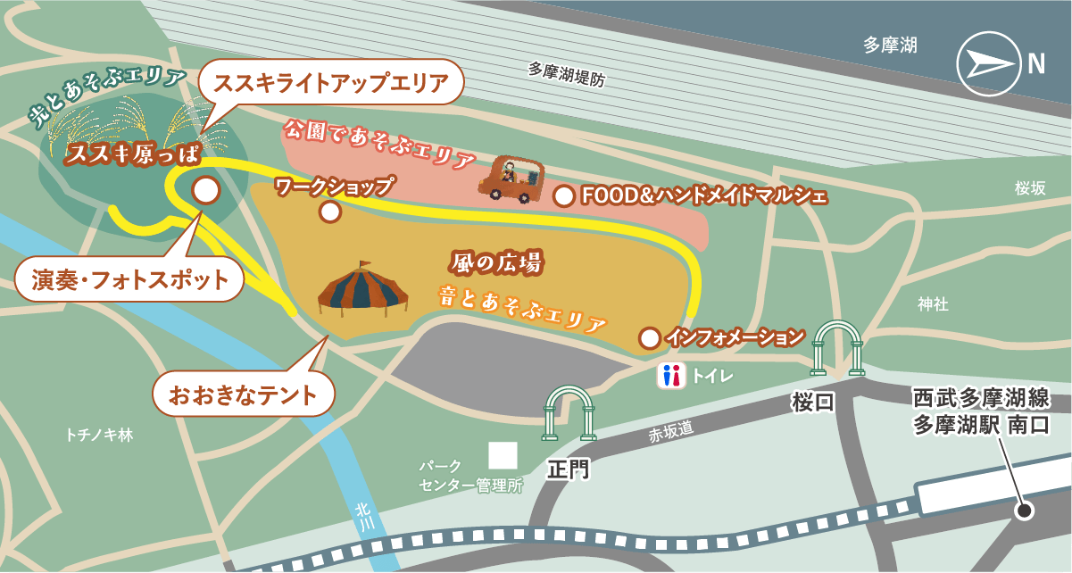 2025年秋の舞台は、多摩湖の潤いに包まれ、武蔵野の里山の景観が今も息づく狭山公園。秋のススキに、自然の光や音を織り交ぜた特別演出が楽しめる期間限定イベントで、11月7日(金)~24日(月・祝)のうち、金・土・日・祝日の10日間に開催されます。