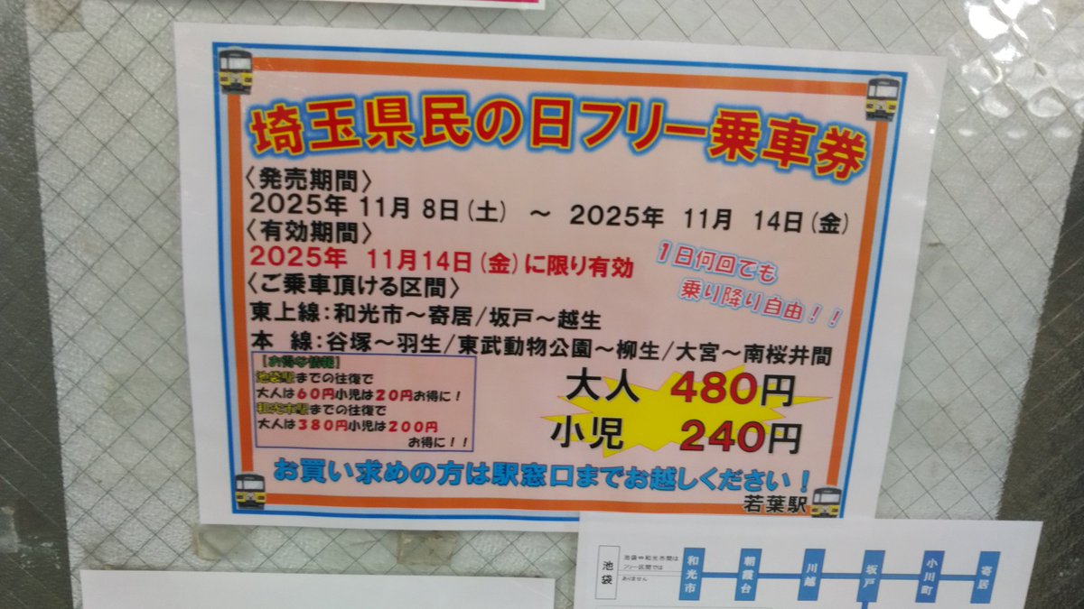 @rappakun2"埼玉県内で乗り放題! 11月14日「埼玉県民の日」にあわせ、私鉄6社がフリー乗車券を発売" l.smartnews.com/m-6yYZ2YYU/5vQ…