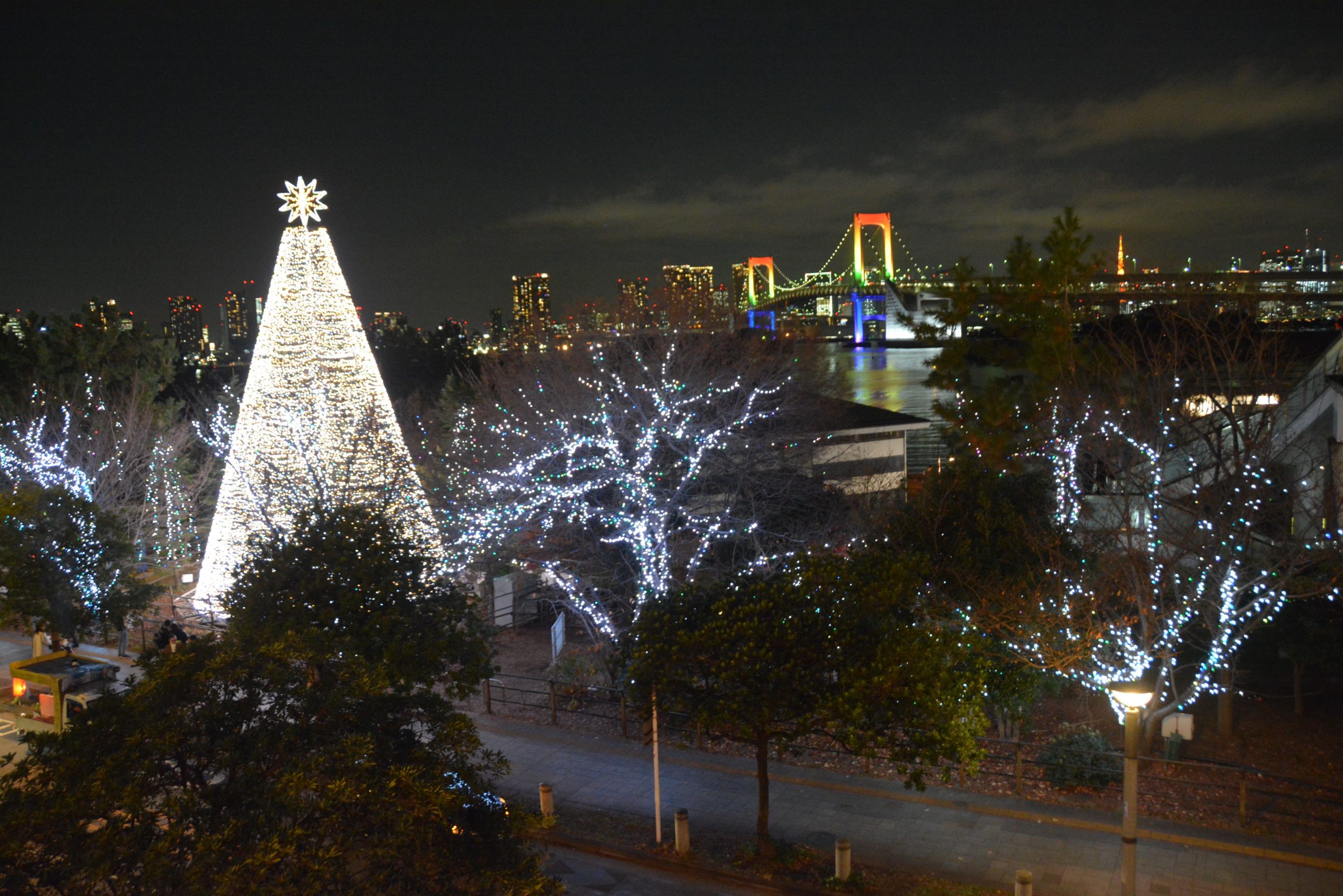 12月20日と24日には「お台場レインボー花火2025」と連動し、海側のライトアップをレインボーカラーに変更。20日は音楽花火、24日は周辺3施設による特別花火が上がるイベントを実施。点灯時間は17時〜24時だ。