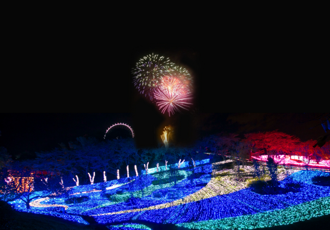 Crystal Kay など5組による音と光のイルミネーションショーを17時以降、15分ごとに開催。