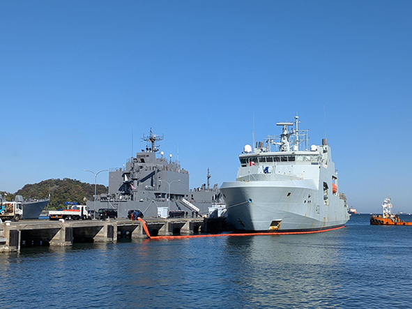 同艦は補給のため寄港中で、カナダのインド太平洋での安全保障戦略「ホライズン作戦」の一環として活動。11月には日本・豪州・NZ海軍と東シナ海で共同訓練も実施している。