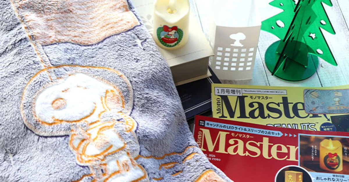同時発売の通常版「MonoMaster」2026年1月号(1990円)には、専用スリーブ付きの スヌーピーゆらゆらキャンドルライト が付録となる。