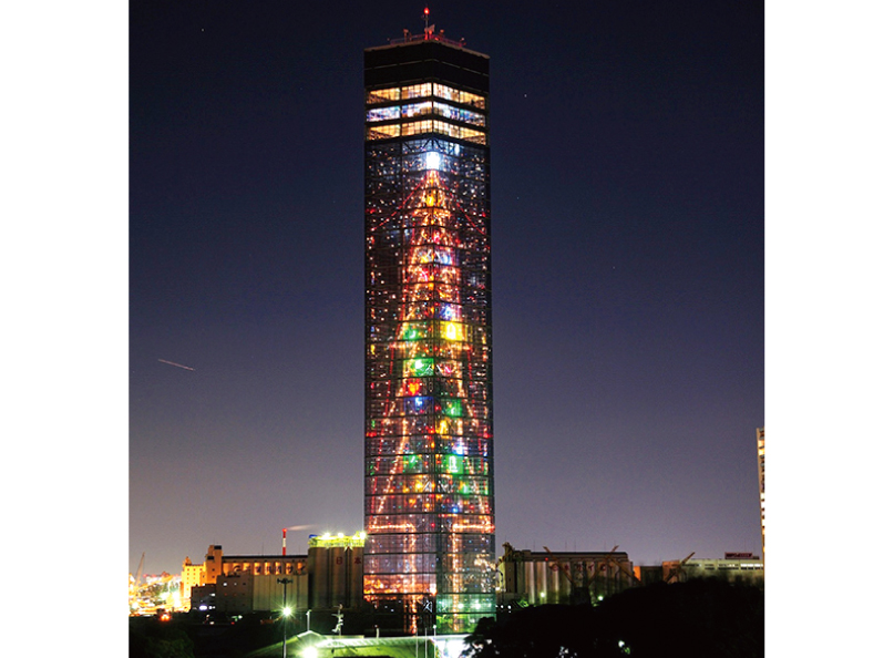 千葉ポートタワーでは「千葉ポートタワークリスマスファンタジー2025」を開催中。高さ100mの壁面に約3500個の電球で巨大クリスマスツリーを描いたイルミネーションが毎日17時~21時に点灯する。