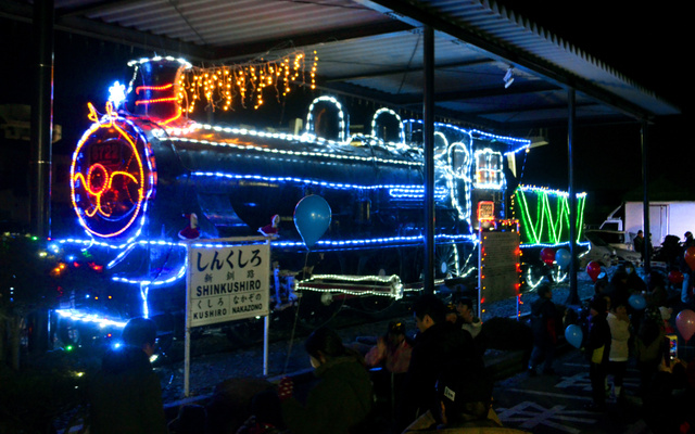 北海道の「釧路製作所」は敷地内に保存する蒸気機関車「SL8722号」で、今年もイルミネーション点灯を