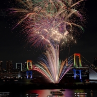 各日19時から約5分間、約1,300発がお台場海浜公園沖から打ち上がり、特設席なしで周辺各所から鑑賞できる。