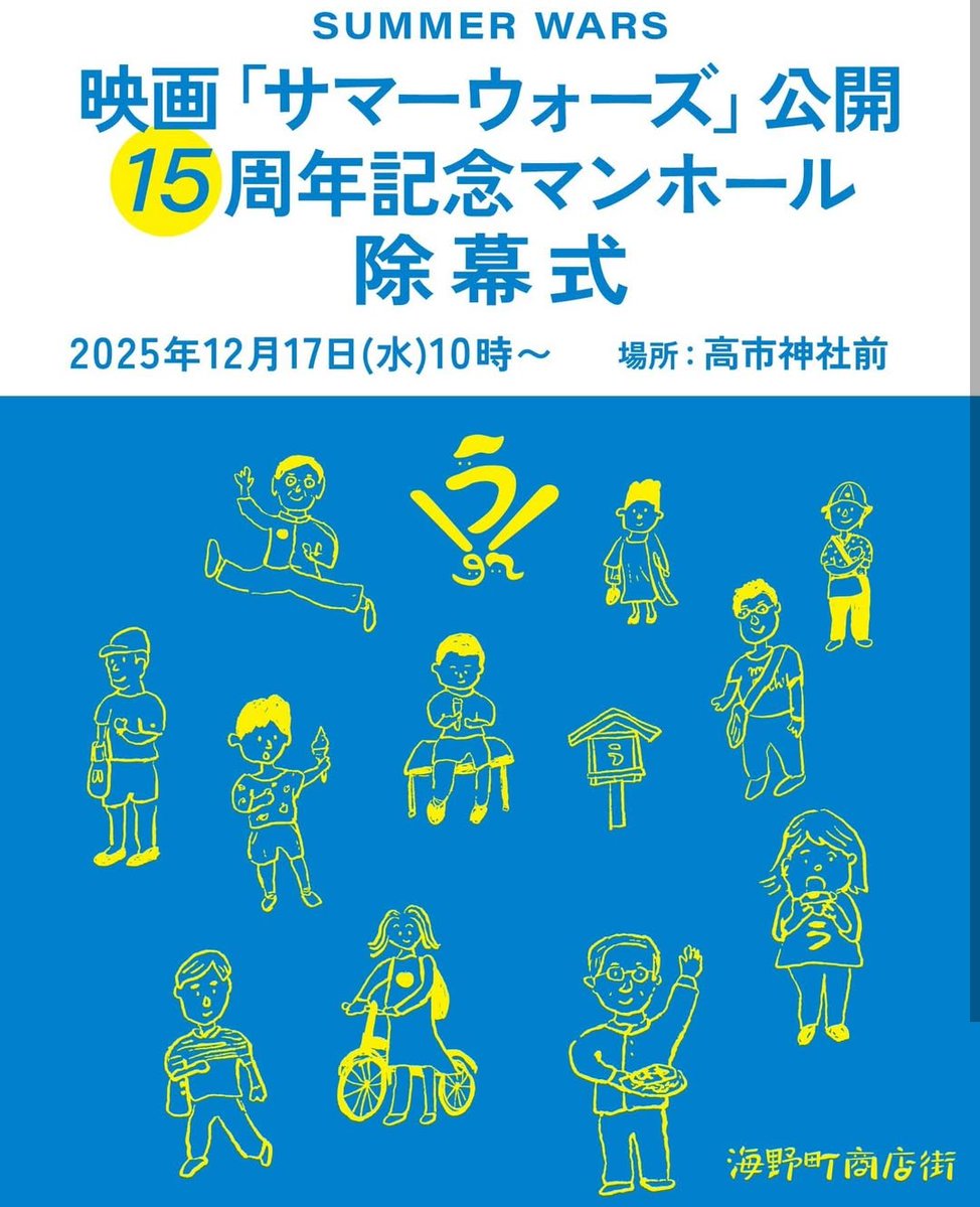 12月17日、長野県上田市中心部の海野町商店街「高市神社」前に、細田守監督のアニメ映画「サマーウォーズ」のキャラクターをデザインしたマンホールが設置された。