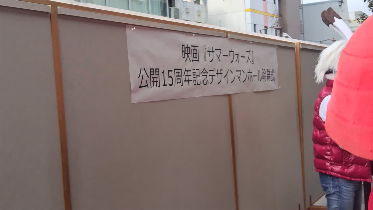 作品公開15周年を記念し、制作会社から市に寄贈されたもので、除幕式にはファンも来場。マンホールには市花の桜に囲まれ、キングカズマや主人公・健二のアバターが描かれている。マンホールの設置場所は、作中ゆかりの地で多くの人の目に触れる場所だとして選ばれた。