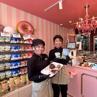 ドーナツは、ドーナツ型の「堅あげ」と、もちっとした丸型の「爆もち」の2系統があり、チョコレート味を中心に多彩なトッピングが楽しめる。