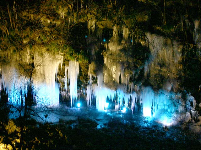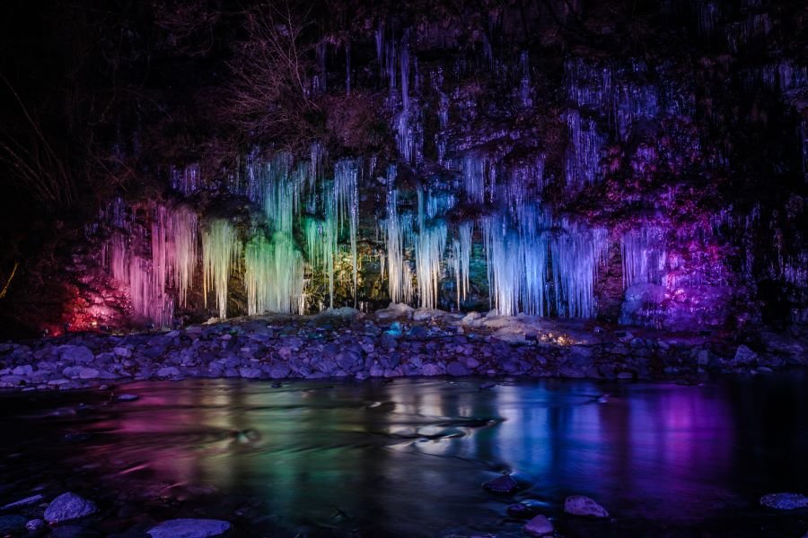 荒川源流の岩肌から湧き出た水が凍りつき、巨大な氷の造形となったもので、寒さが増すほど成長。