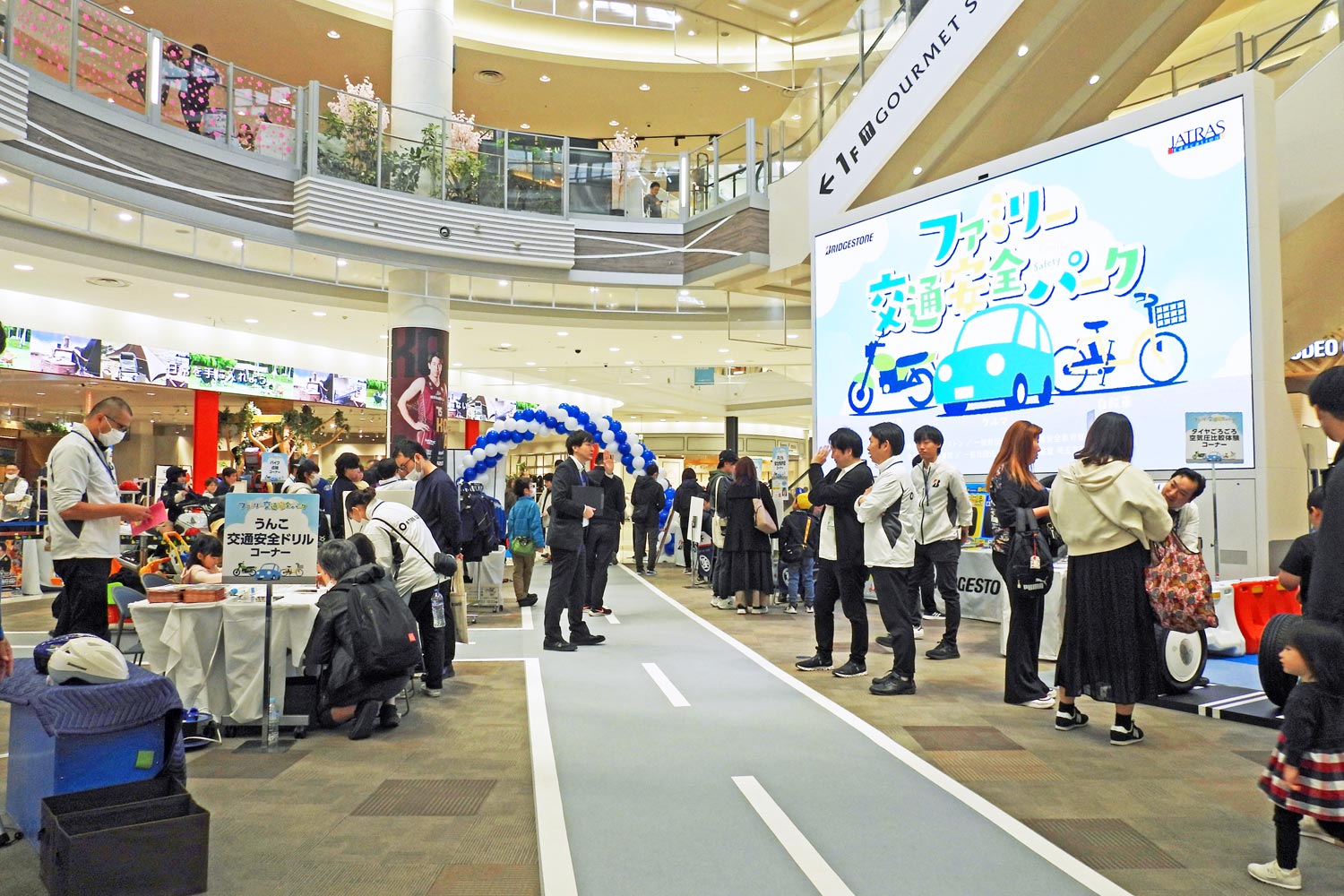 子どもや家族向けに、ヘルメット着用で発行される「こどもサイクル免許証」(小学生以下対象)や自転車シミュレーター、信号機付き横断歩道での横断体験などで交通ルールを楽しく学べるイベントです。