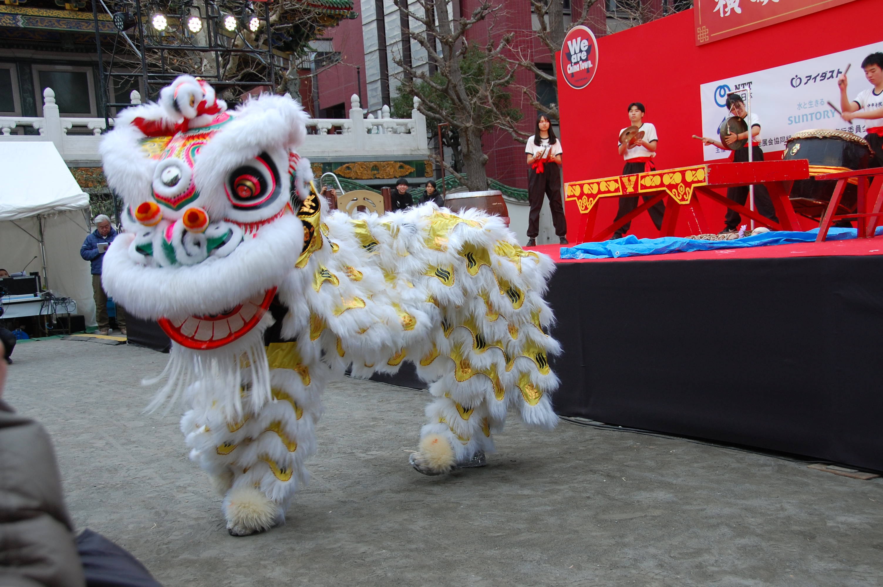 中華獅子による迫力あるパフォーマンス。