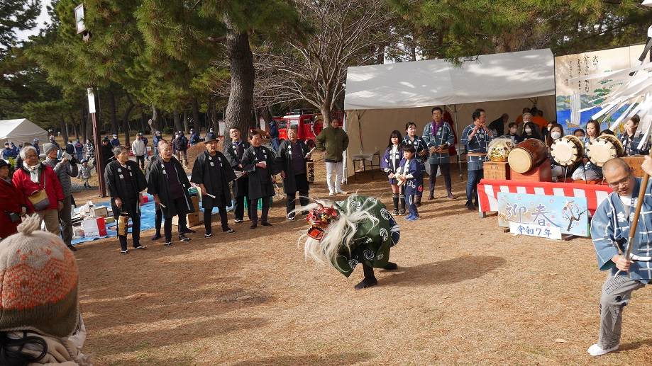 会場では、人気の小どんどでのお団子焼き(有料・早めに売り切れやすい)や、抽選会、食べ物屋台のほか、木遣・お囃子・獅子舞の演舞、願い事・書き初め体験なども実施。さらに金沢動物園の展示やご当地かるた大会など地元色のある企画も楽しめます。