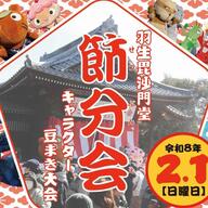 埼玉・羽生駅近くの「毘沙門堂」で、2026年2月1日(日)10時~15時に「羽生毘沙門堂 節分会 キャラクター豆まき大会」を開催します。
