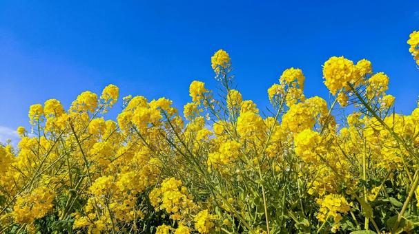 寒波の中でも、スカイドルフィン近くの花畑一面に広がる黄色と青空のコントラストが春の訪れを感じさせ、散策路を歩きながら鑑賞できる。見頃は3月上旬まで。
