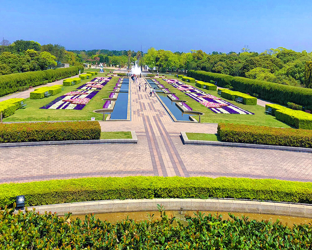 同公園は、博多湾と玄界灘に挟まれた砂州「海の中道」に広がる、全長約6キロ・約350ヘクタールの広大な国営公園。四季折々の花が楽しめるほか、「動物の森」ではリスザルやカピバラ、カンガルーなどの動物たちと間近に触れ合える。