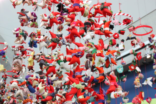 館内には、展示生物をモチーフにした約1万点のつるし飾りが並び、華やかな雰囲気を演出する。つるし飾りは地元のちりめん細工教室「ままや」が制作し、魚やアザラシなど多彩な生き物が登場。ちりめん細工の体験教室も行われ、子どもから大人まで楽しめる催しとなっている。