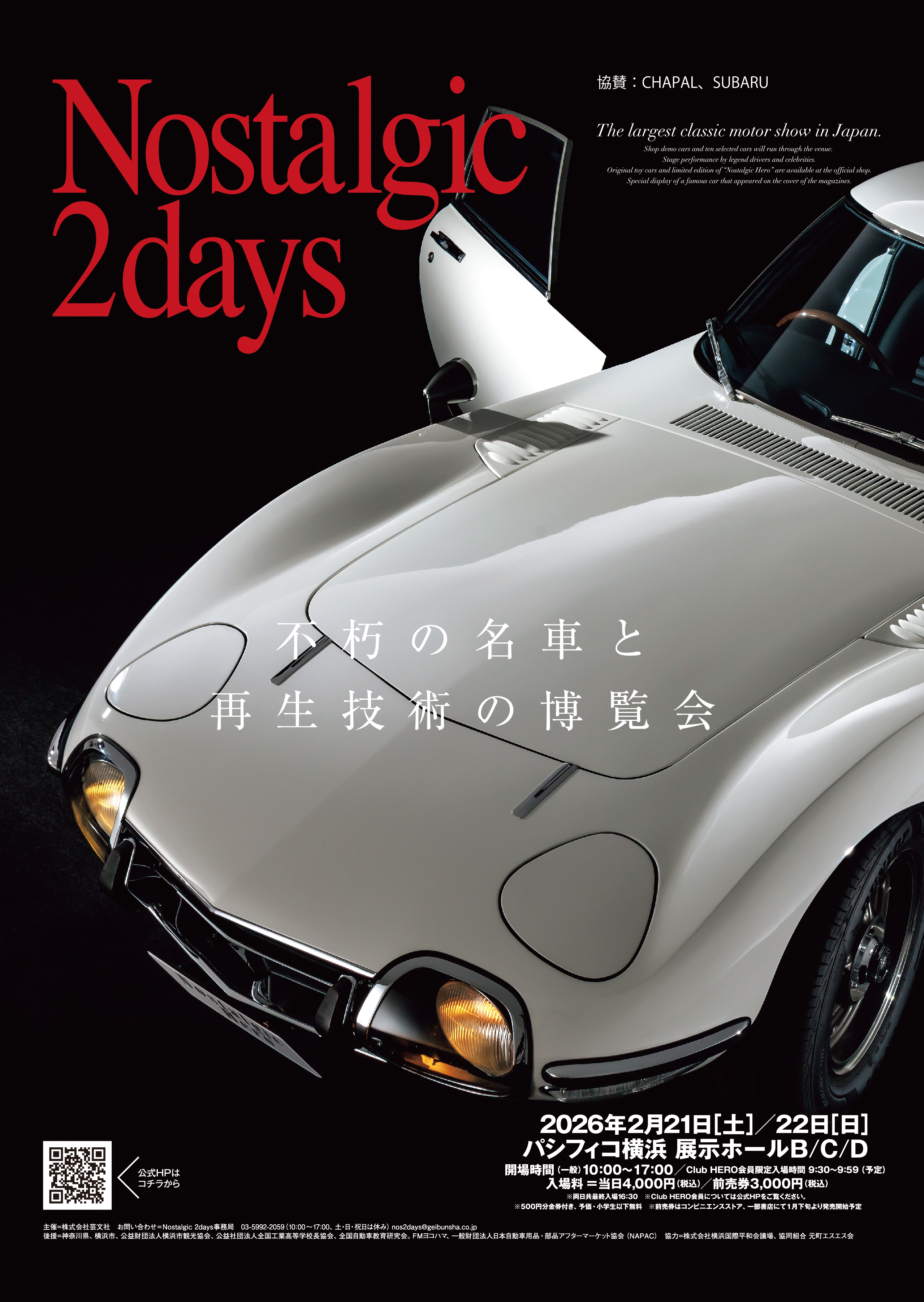 日本最大級のクラシックモーターショー「Nostalgic 2days」が、2026年2月21・22日に「パシフィコ横浜」で開催される。