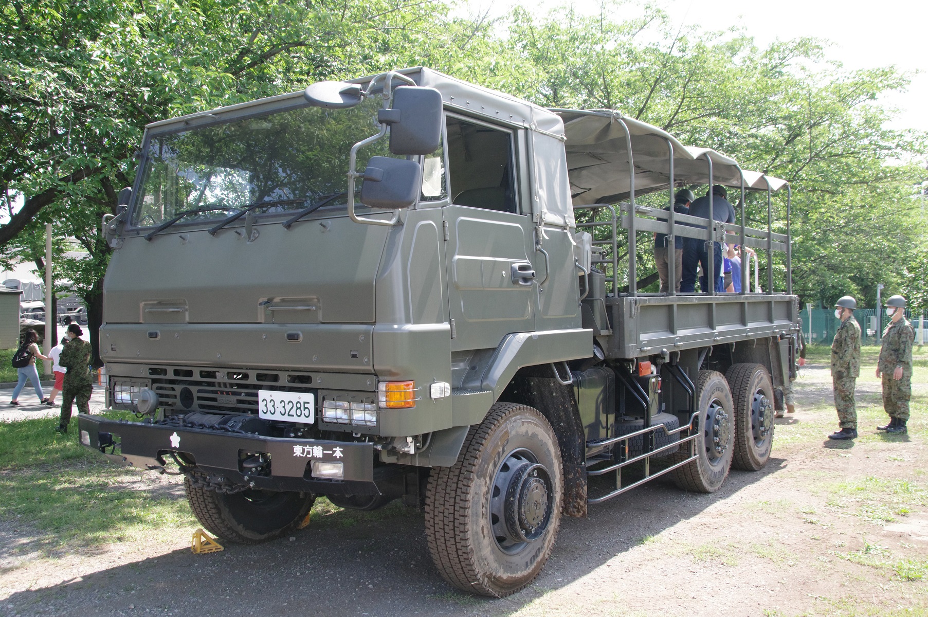 陸上自衛隊の「中砲けん引車」や「大型輸送トラック」などに体験試乗出来ます。