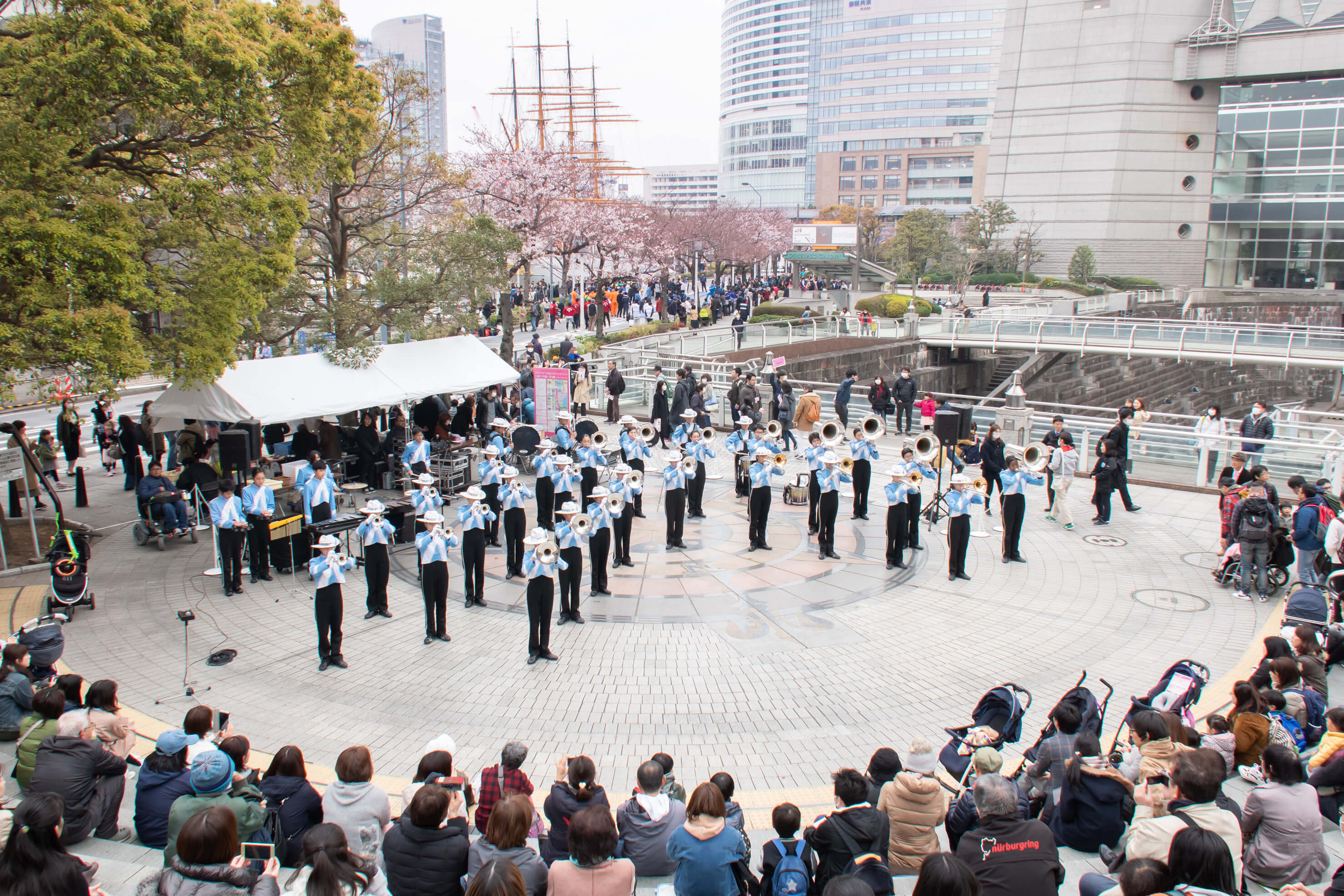 JR桜木町駅からパシフィコ横浜へ続く約500mの桜並木に咲くソメイヨシノ約100本を楽しめます。また、3月28日は歩行者天国となり、パレードやグルメ、はたらく車展示などを実施。地域活性化や脱炭素推進を目的に、来街者と地域が交流できる春の恒例イベントです。