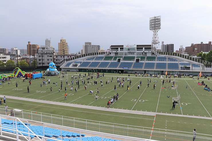 会場ではアメフト体験やボッチャ、テックボールなどのスポーツブースも充実。スタート練習やフォーム確認ができるミニトレーニングもあり、大人の参加も歓迎だ。