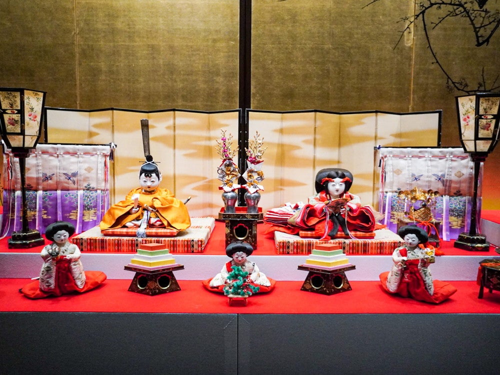 江戸時代から昭和初期まで、中野区に伝わるひな人形を展示。2階メイン会場では、旧江古田村の名主・山崎家に6代続いて受け継がれた江戸時代のひな段飾り(区指定有形文化財)をはじめ、公爵家のひな飾りや大正~昭和期の御殿飾り・段飾りなどが並びます。