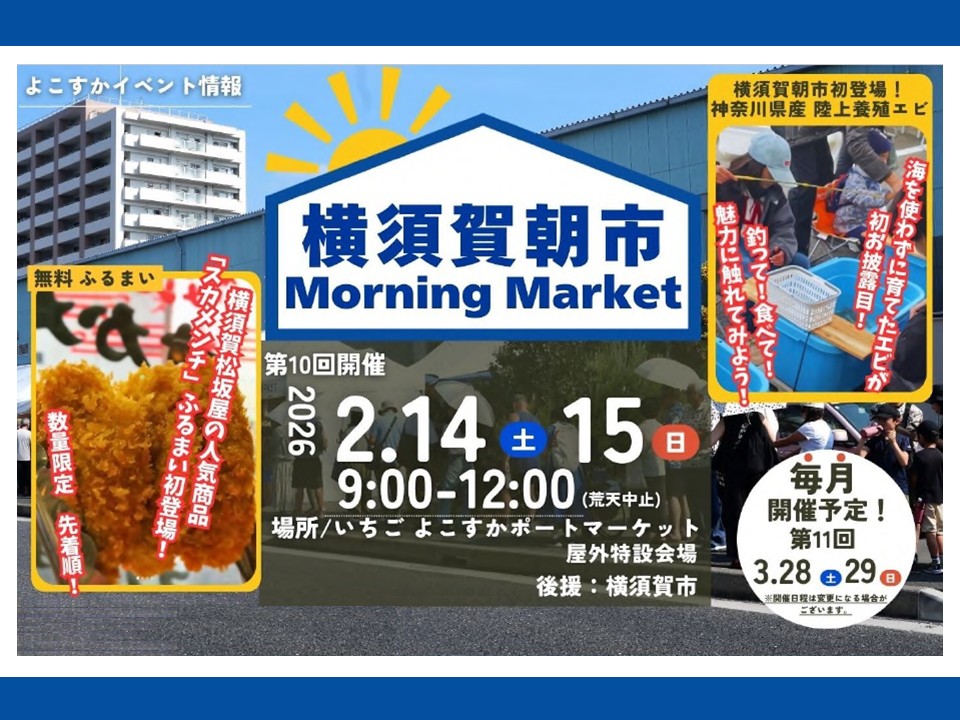 横須賀「いちご よこすかポートマーケット」で、2月14日・15日に開催される「横須賀朝市」で、観光交流都市・愛媛県松山市による「えひめ松山フェア」を初開催します。名物の「蛇口から出るみかんジュース」など、松山の魅力を横須賀で体験できます。