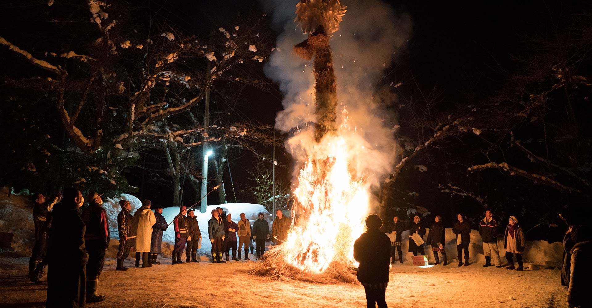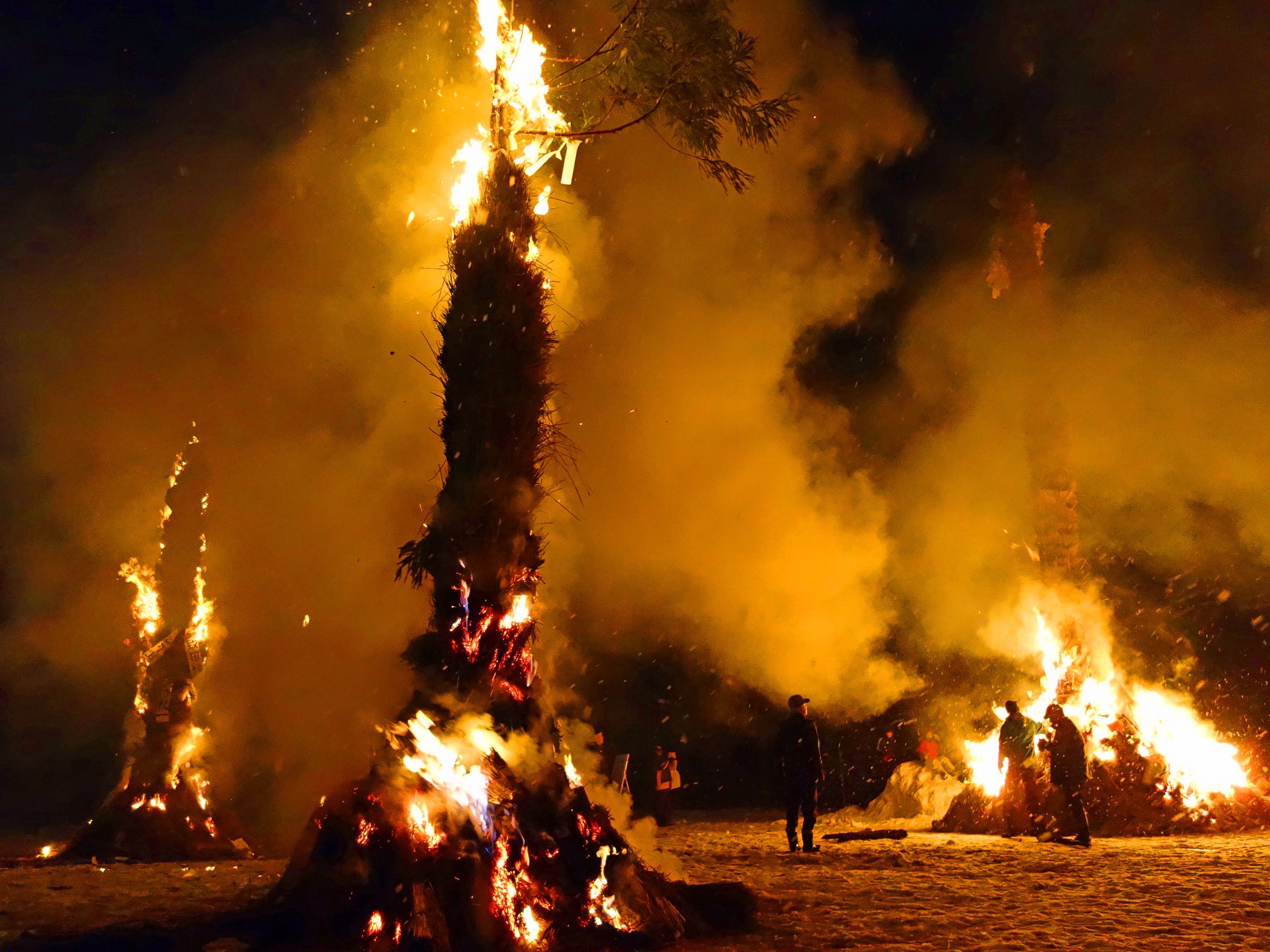 大きな炎(サイノカミ)が雪の中で燃え上がる様子は圧巻です。