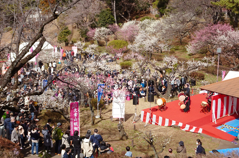 横浜市港北区の大倉山公園梅林で「大倉山観梅会」が2月21日・22日に開催される。園内約1万平方メートルに46種類・約220本の梅が植えられ、「白加賀」や「思いのまま」、「緑萼梅」など珍しい品種も楽しめる。早咲きから遅咲きまで順に開花し、1月下旬から春先まで観賞可能。